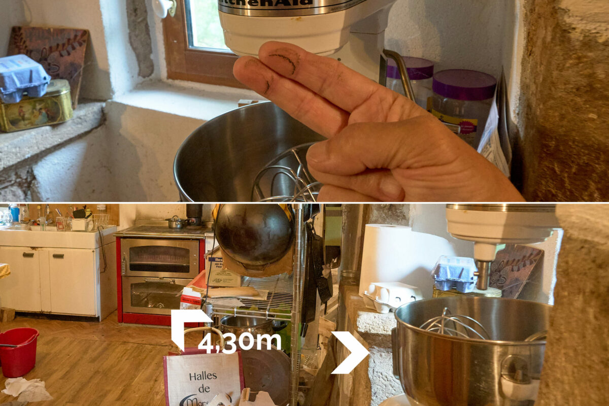 - Entrée d’eau de pluie à la hauteur de la cheminée le long des murs et aussi à l’intérieur du conduit et de la cuisinière à 400 / 500 degrés Celsius.